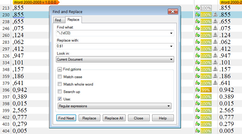I also used Regex in Find&Replace the other day to add a 0 in front of the decimal point of a long list of numbers where it was missing.