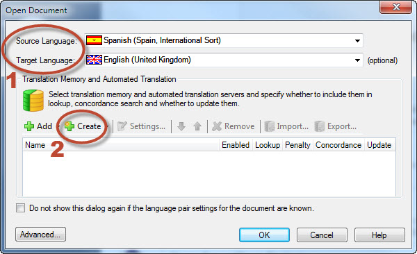 - Check that you’ve got the right source and target languages and variants (they have to match the languages you chose in the Open Document window).