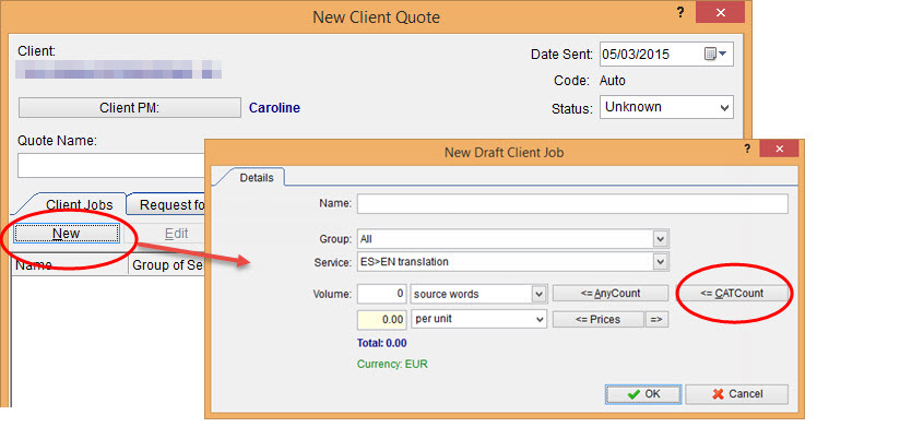 I use TO3000 as my program of choice for creating quotes. The CATCount and quote options are just two of the many features of this comprehensive project management and invoicing package for freelance translators. With TO3000 I can create a quote, turn it into a scheduled job and send an invoice in just a few clicks.