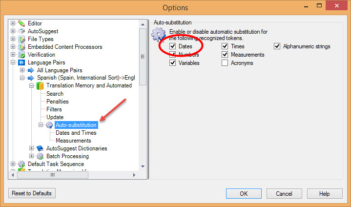Thanks, Emma, for sharing this information. Some time ago I had a different problem with Studio when localizing dates into Spanish. Even when I had adjusted the settings in auto-substitution and everything, dates in the target (Spanish) read like “jueves 25 de junio de 2015” instead of just “25 de junio de 2015”; i.e., the unwanted day of the week appeared every time there was a date to be localized; of course, the source segment did not include the day of the week. This used to drive me crazy, as this error repeated/propagated in all segments carrying a date. Then I learnt that I should modify Windows dates settings by going to Control Panel > Regional language settings > Formats (in Spanish, Panel de control > Configuración regional y de idioma > Formatos), and change the long date format there (of course, not including the day of the week) for each of the Spanish regional variants. Fortunatelly, this trick worked 🙂 I would never have guessed that Windows settings could affect date localization in Studio.