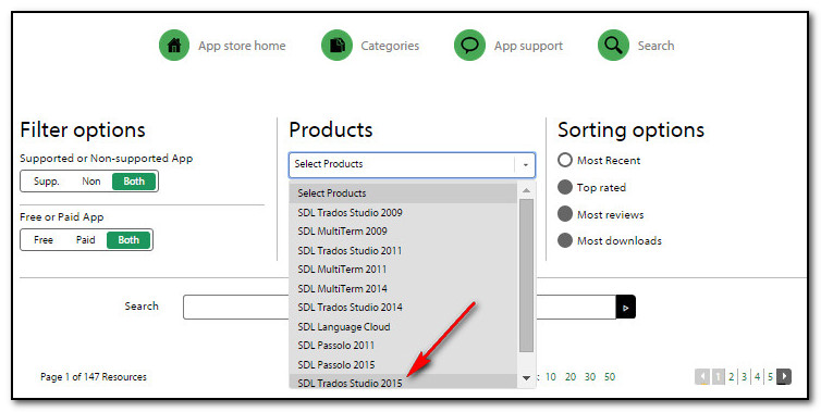 While you’re there, why not check out all the apps that work with the latest Studio version. Click on Search and select SDL Trados Studio 2015 from the Product drop-down list: