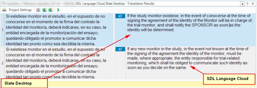 Slate Desktop and SDL Language Cloud Custom Machine Translation Engines
