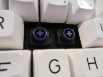 Topre (from Tokyo Press) switches are a Japanese hybrid between traditional rubber domes and mechanical switches. I won’t go into the details of electro-capacitive technology, so let’s say they’re the equivalent of a high-end rubber dome actuated by individual mechanical plungers. The feeling is slightly tactile, but with a linear action and an actuation force of 45 g, making it a light switch. They are not clicky, and they are rather quiet. Contrary to other Topre keyboards, the Novatouch uses proprietary sliders that make it compatible with aftermarket Cherry mx keycaps. I use thick, high-profile keycaps on mine.