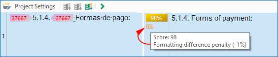 Penalties also affect fuzzy matches (so a 90% match would be shown as an 88% match in the above example), but that’s fairly irrelevant. Their value really lies in stopping a potentially unreliable 100% match from being pretranslated at the file preparation stage.