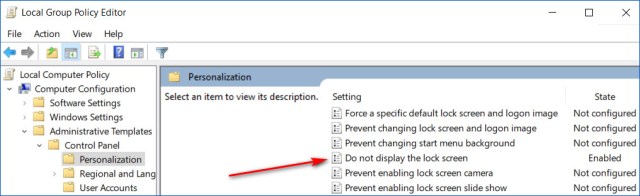 - Double click Do not display the lock screen, select Enabled and click OK.