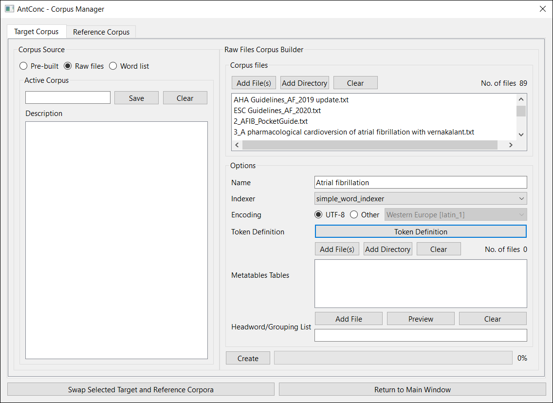 Version 4 still offers the legacy method to create a corpus by simply opening files in the tool. Unfortunately, once you’ve created a Quick Corpus, you can neither add files on the fly nor remove existing ones. I find this more inflexible than before. One workaround is to add new files to a dedicated folder and rebuild the corpus, although large pdfs are slow to process each time, because AntFileConverter works under the hood to convert pdf files to text.