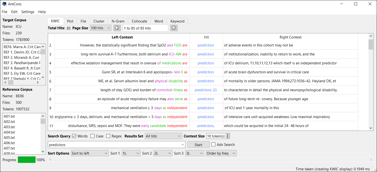 In v.4, search results flash up on screen almost as soon as you press Start. Even advanced searches with a second search term in context return hits at lightning speed. The engine runs queries in large corpora much faster than before, benefitting from the new SQLite database processing.