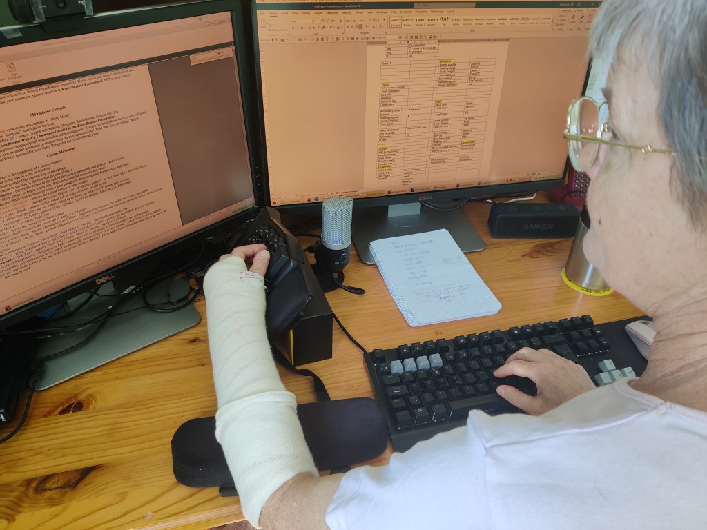 As the weeks went by, Prototype 2 combined with Dragon gave me sufficient versatility to overcome the frustrations of working with a broken arm. I even discovered unsuspected benefits, like learning to set up nifty new shortcuts and improving my diction, which came in useful when I presented a webinar for ITI MedNet a few weeks later. (On ergonomics – the irony of it!) But the real silver lining was the satisfaction of finding that my backup plan worked and that, as a freelancer, I didn’t have to stop working for four weeks or more.