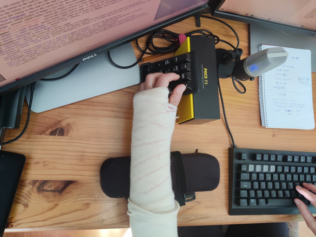 Happy to report that I’m close to regaining a fully functional wrist, after three months of my own targeted exercise plan. Physiotherapy never materialised – the appointment took too long to come through 😥.